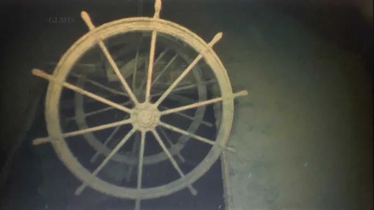 A video shared by the Shipwreck Society shows pieces of the vessel appearing in the dark water. Slowly, more recognizable ship hardware, including a smokestack and the ship's wheel, becomes visible to the ROV operators.