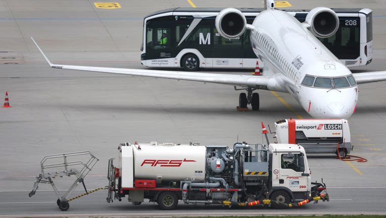 A refueling vehicle (front) drives past a passenger aircraft on the apron at Munich Airport.Photo: Karl-Josef Hildenbrand/dpa (Photo by Karl-Josef Hildenbrand/picture alliance via Getty Images)