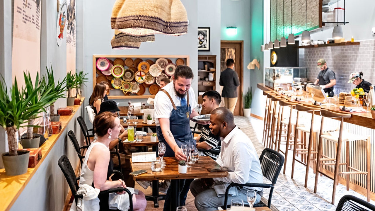 A bartender drops off drinks in the dining room at a restaurant in 2022. (Photo by Scott Suchman for The Washington Post via Getty Images)