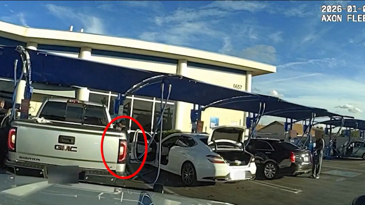 The suspect, identified as 33-year-old John Graff, is accused of beating his girlfriend in Casa Grande last month and stealing her pickup truck. Four days later, police located Graff at a Super Star Car Wash near 67th Avenue and Olive Avenue.