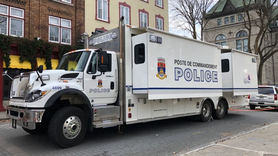 FILE - A police vehicle blocks off a street in Old Quebec, with the Quebec City Town Hall in the background on November 1, 2020 in Quebec City, Montreal. (ANNE-SOPHIE THILL/AFP via Getty Images)