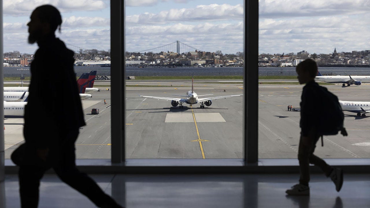 FILE - Delta planes at Terminal C of LaGuardia Airport (LGA) in the Queens borough of New York, US, on Sunday, April 7, 2024. Photographer: Angus Mordant/Bloomberg via Getty Images