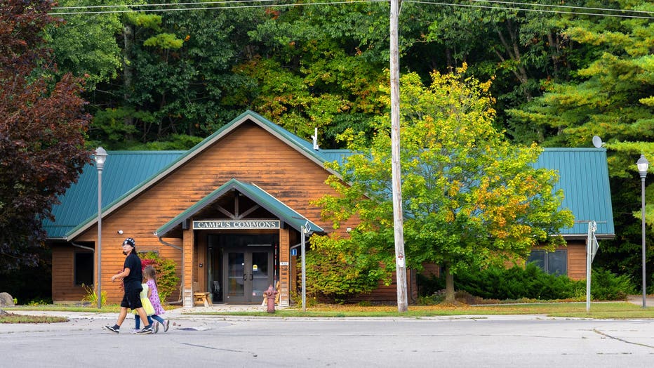 Adrin "AJ" Stauber, 14, walks with his young sisters to the gas station while they wait for their mom to finish up with class on Sept. 17, 2025, at the College of Menominee Nation in Keshena, Wisconsin. (Dominic Di Palermo/Chicago Tribune/Tribune New