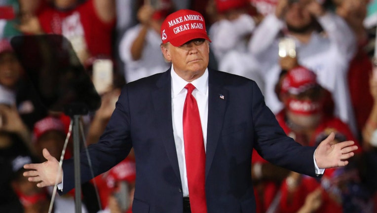 OPA LOCKA, FLORIDA - NOVEMBER 01: U.S. President Donald Trump arrives to speak during his campaign event at Miami-Opa Locka Executive Airport on November 1, 2020 in Opa Locka, Florida. President Trump continues to campaign against Democratic presiden