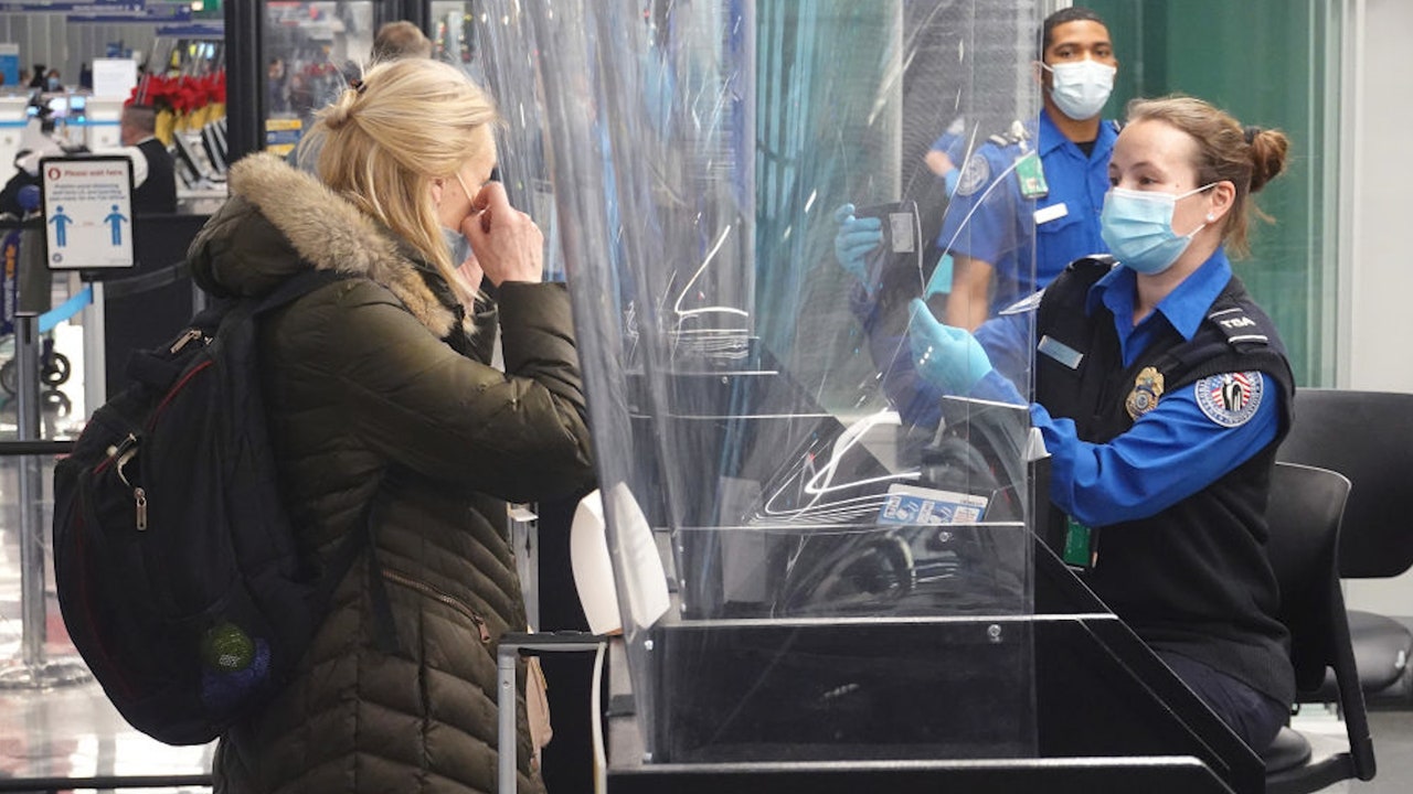 FILE - Travelers check in with TSA at O'Hare International Airport on Nov. 25, 2020 in Chicago, Illinois. (Scott Olson/Getty Images)