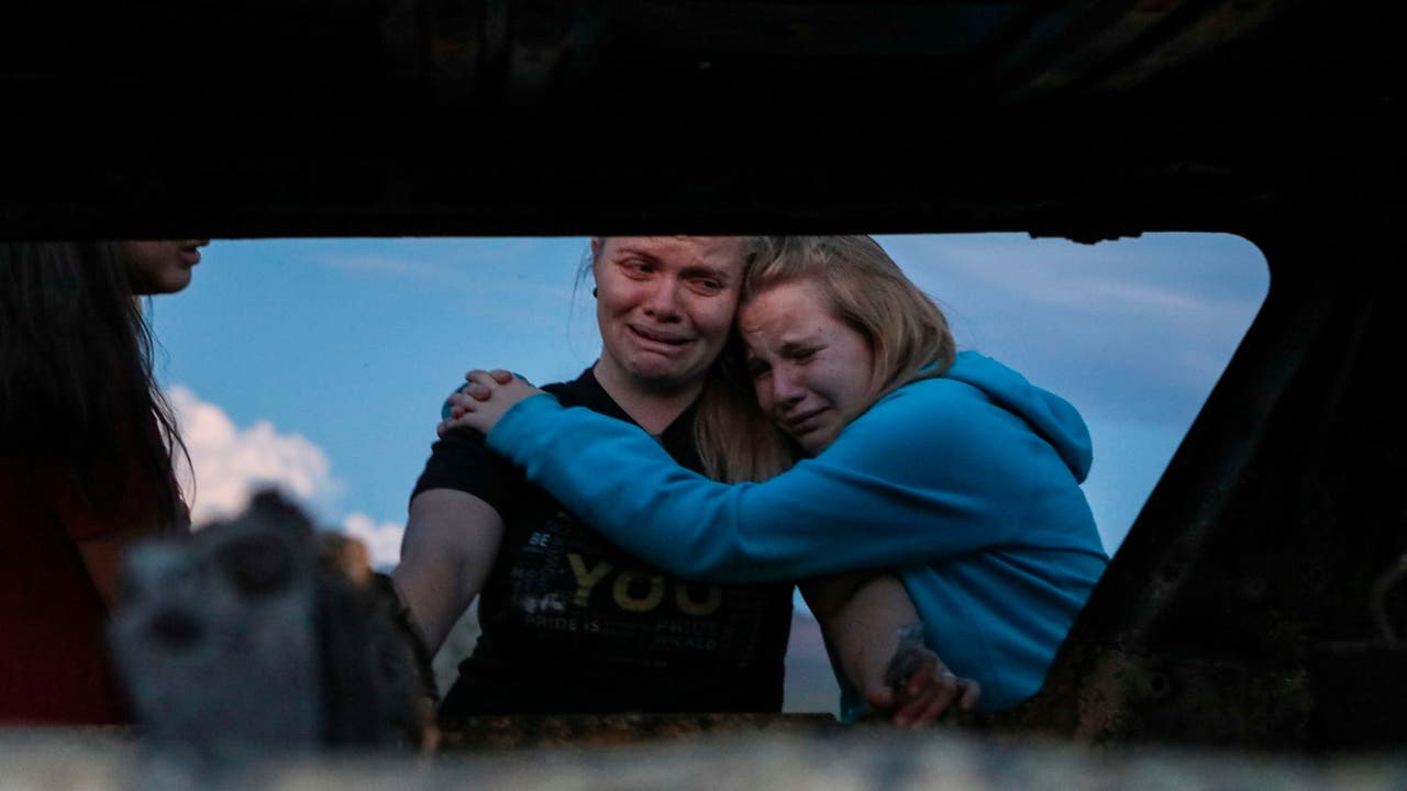Members of the Lebaron family mourn while they watch the burned car where part of the nine murdered members of the family were killed and burned during a gunmen ambush on Bavispe, Sonora mountains, Mexico, on November 5, 2019. (Photo by HERIKA MARTINEZ/AFP via Getty Images)