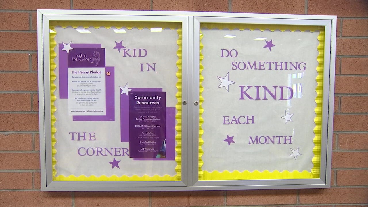 At Shea Middle School in Phoenix, a "Kid In The Corner" bulletin board is displayed in the cafeteria. A student took their own life last year, and principal Scott Lawrence wanted to do something