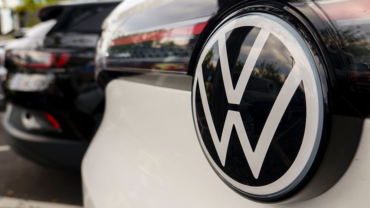 FILE-A Volkswagen logo is displayed on a used vehicle for sale at a dealership on November 11, 2025 in San Diego, CA. (Photo by Kevin Carter/Getty Images)