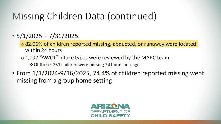 Between May and July 31, 2025, DCS records indicate that 82% of children reported missing, abducted, or runaway were located within 24 hours. However, advocates remain alarmed by the source of these disappearances: 74% of missing DCS children vanished from group homes between January 2024 and September 2025.