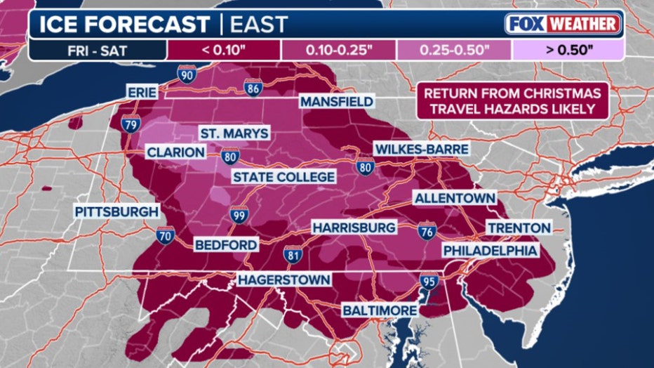 This graphic displays an ice forecast in the Northeast. (FOX Weather)