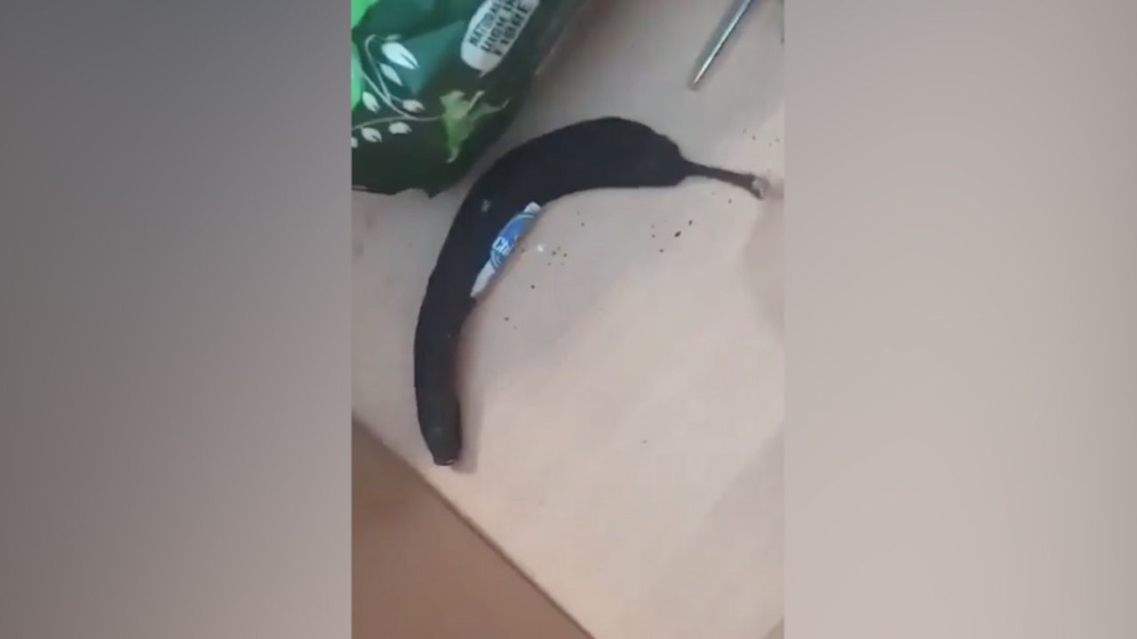 She was thankfully met with no stench of rotting fruit, but instead was shocked to find a very old, crispy and black hardened “banana”.
