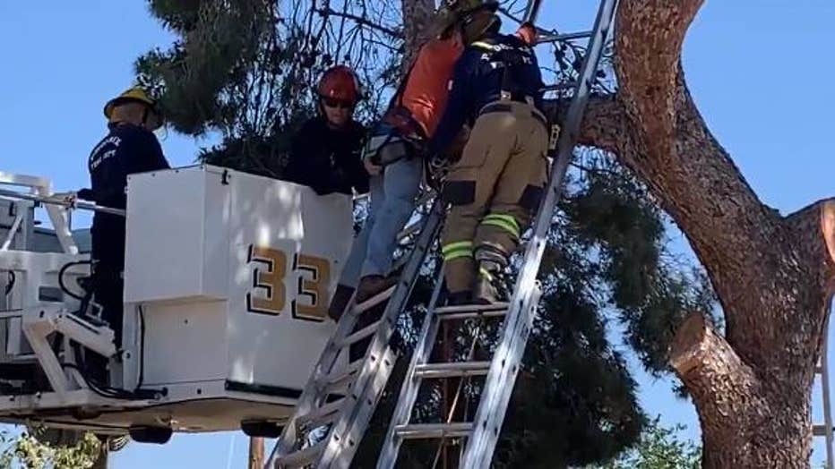 Worker rescued after getting tangled in tree in north Phoenix neighborhood