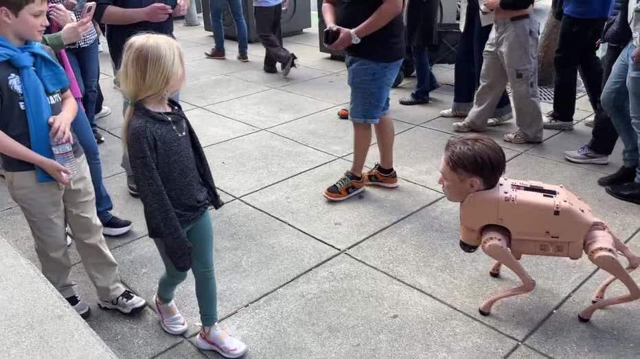 Pedestrians and baseball fans on Wednesday were met with a bizarre sight this afternoon: a four-legged, flesh-colored autonomous robot topped with the head of Elon Musk strutting around on the sidewalk, garnering stares and giggles.