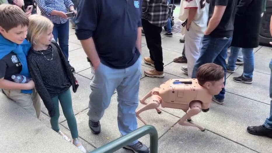 The dog-like creature that bears a striking likeness to the Tesla chief and one-time White House DOGE czar was deployed near Oracle Park, where it startled and intrigued San Francisco Giants fans heading to the game.