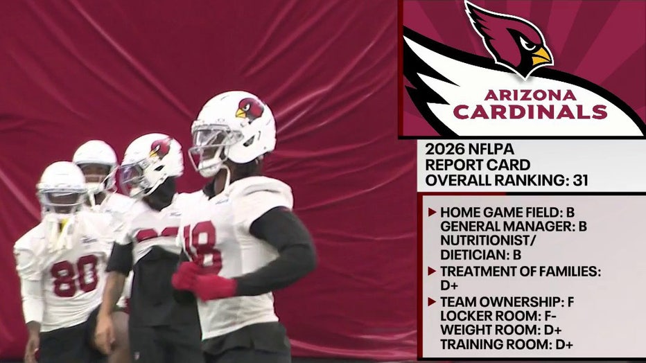 According to ESPN, the Cardinals rank 31st in the NFL Players Association's 2026 report cards, with Arizona beating out only one team – the Pittsburgh Steelers.