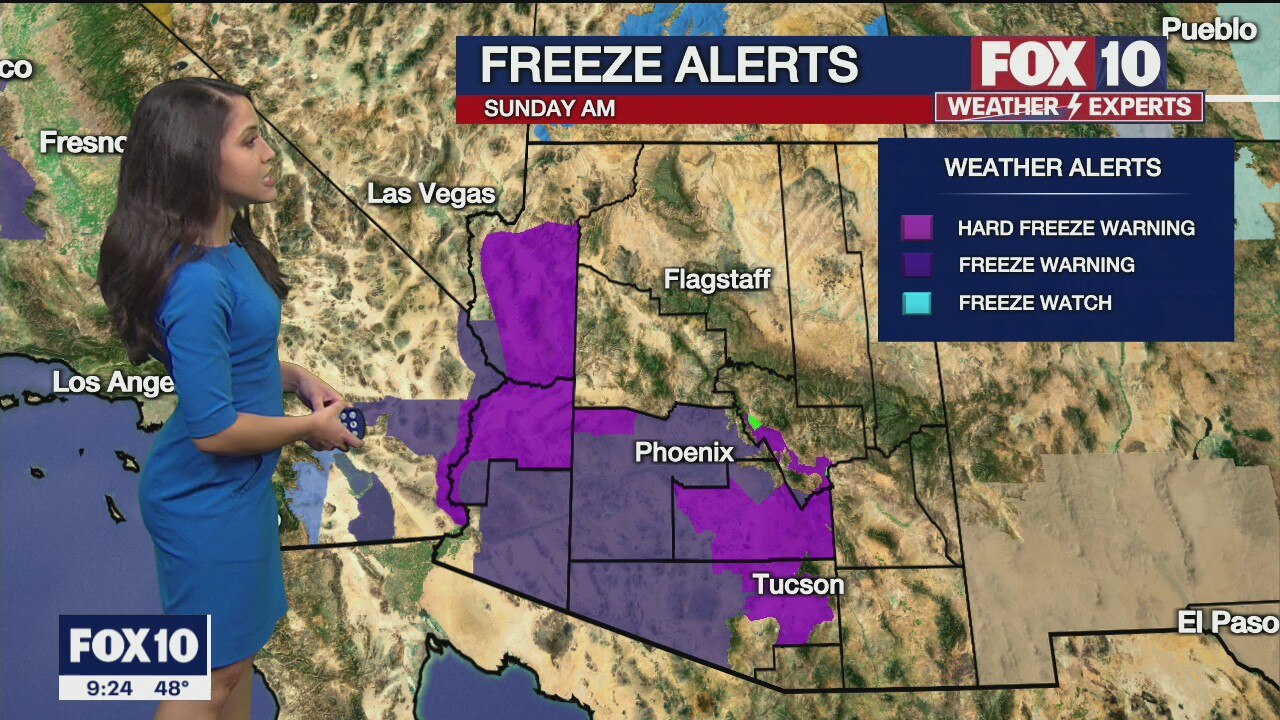 A large part of Maricopa County will be under a freeze warning overnight into Sunday morning.