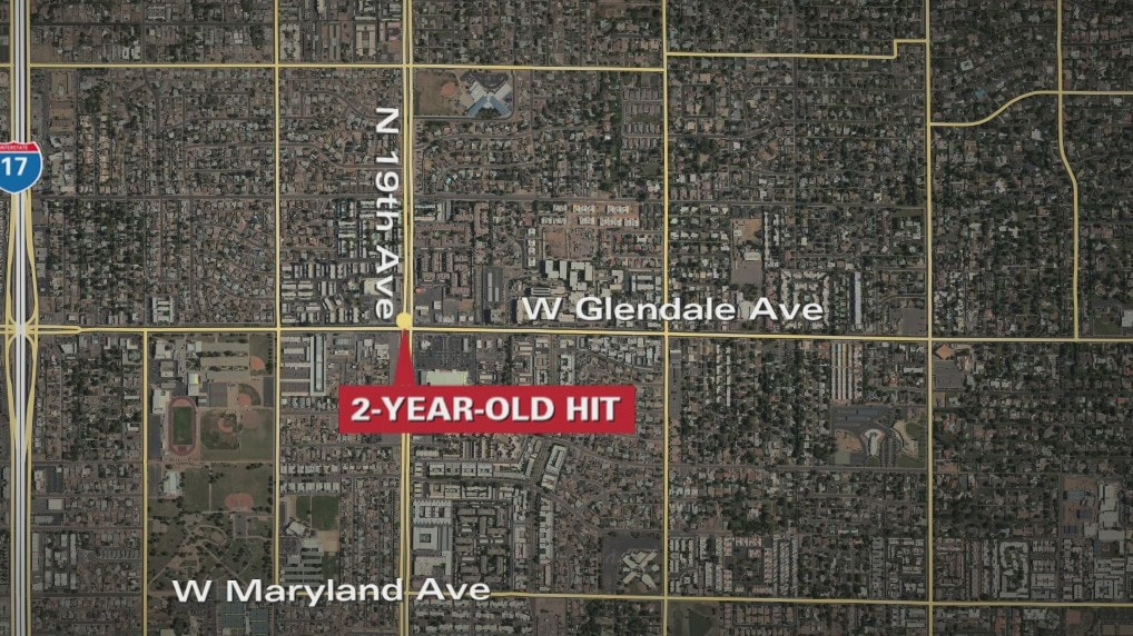 According to Phoenix Police, the boy was being pushed in a stroller by a family member in a crosswalk when a vehicle, described as a charcoal gray 2004-10 Nissan Altima or Maxima, ran a red light and hit the child.
