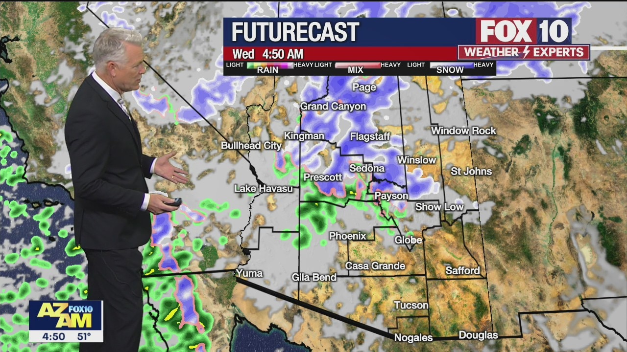 Rain and snow in the forecast today across Arizona with a high near 52? in the Valley.