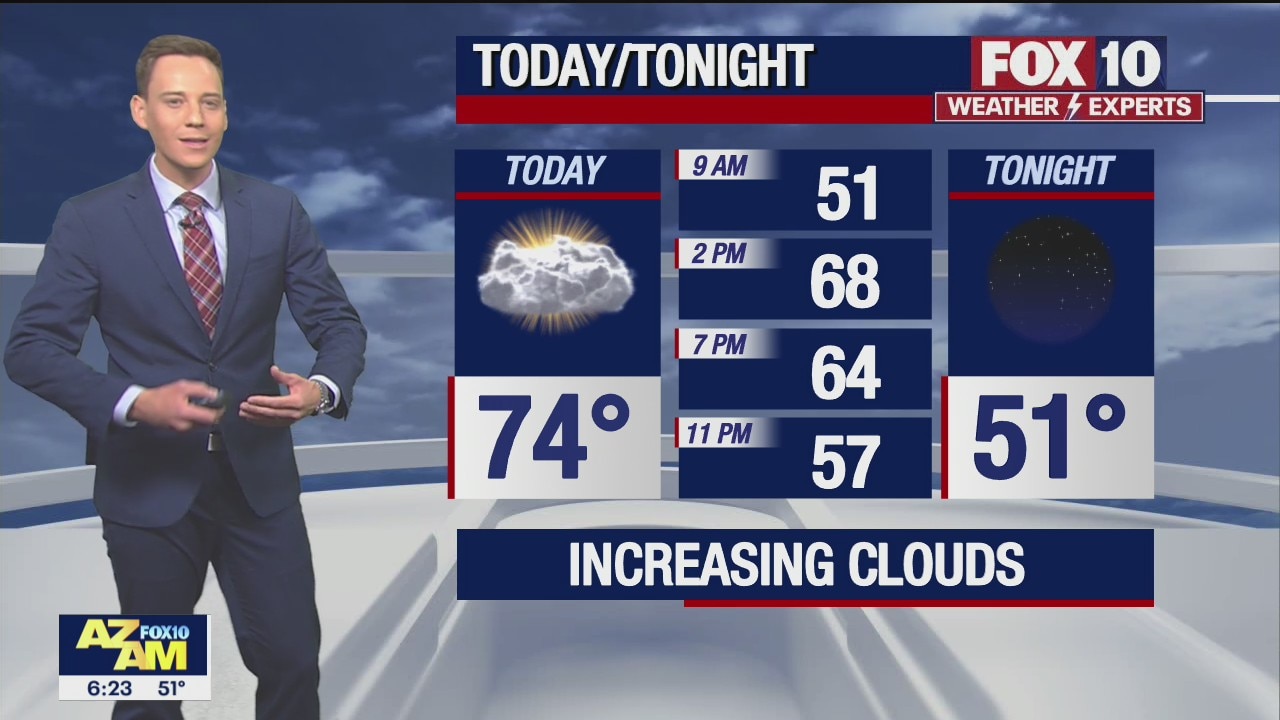 A cloudy day for the Valley with a high near 74?.