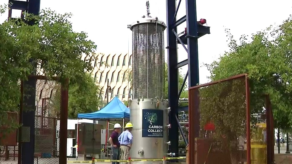 Arizona State University teamed up with Carbon Collect for the project where the 'tree' is made up of about 150 metal discs with materials that work like a magnet to carbon dioxide modules, which are then separated and processed -- then they can be used for things like carbonated drinks.
