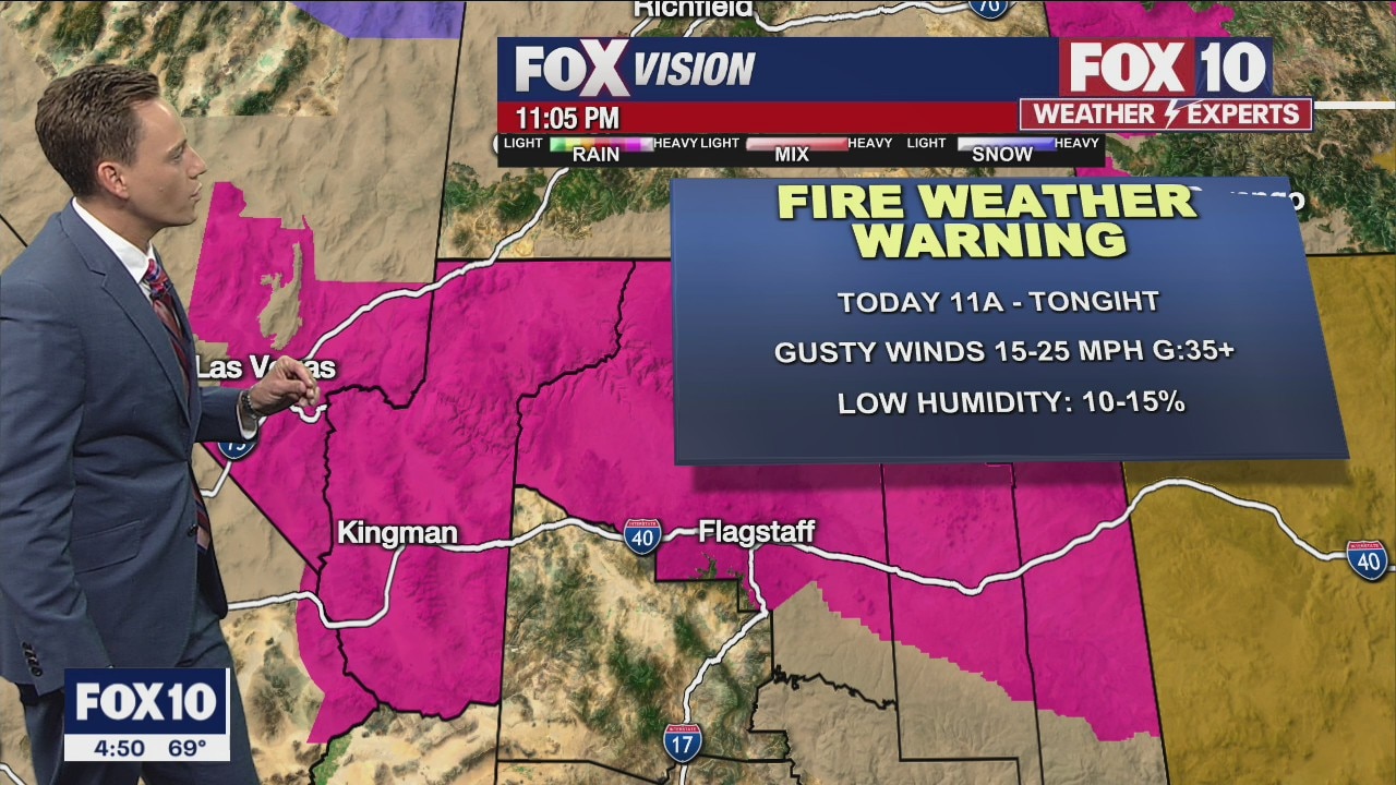Sunny skies with a high near 93? for the Valley. A Fire Weather Watch goes into effect for northern Arizona today.
