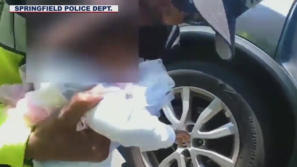 Officers in Massachusetts sprang into action on Monday to save a baby choking in its car seat.