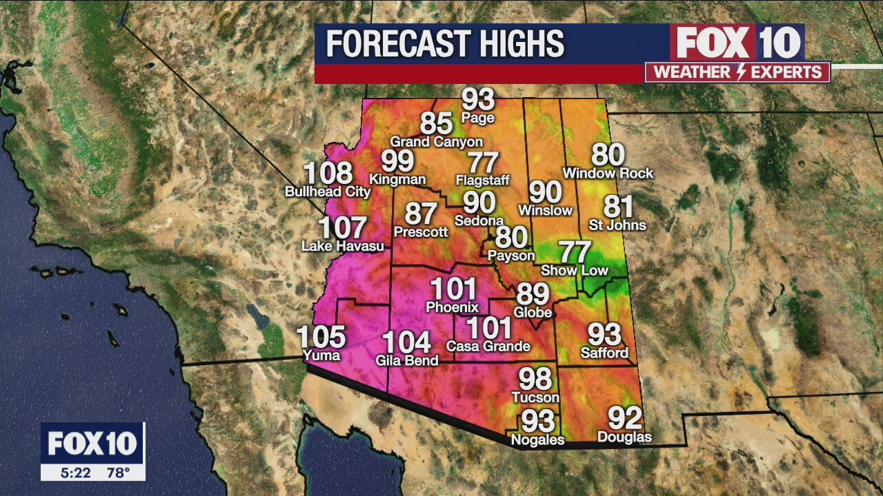 Mostly sunny skies and a chance for rain in the Valley with a high in the low-100s.