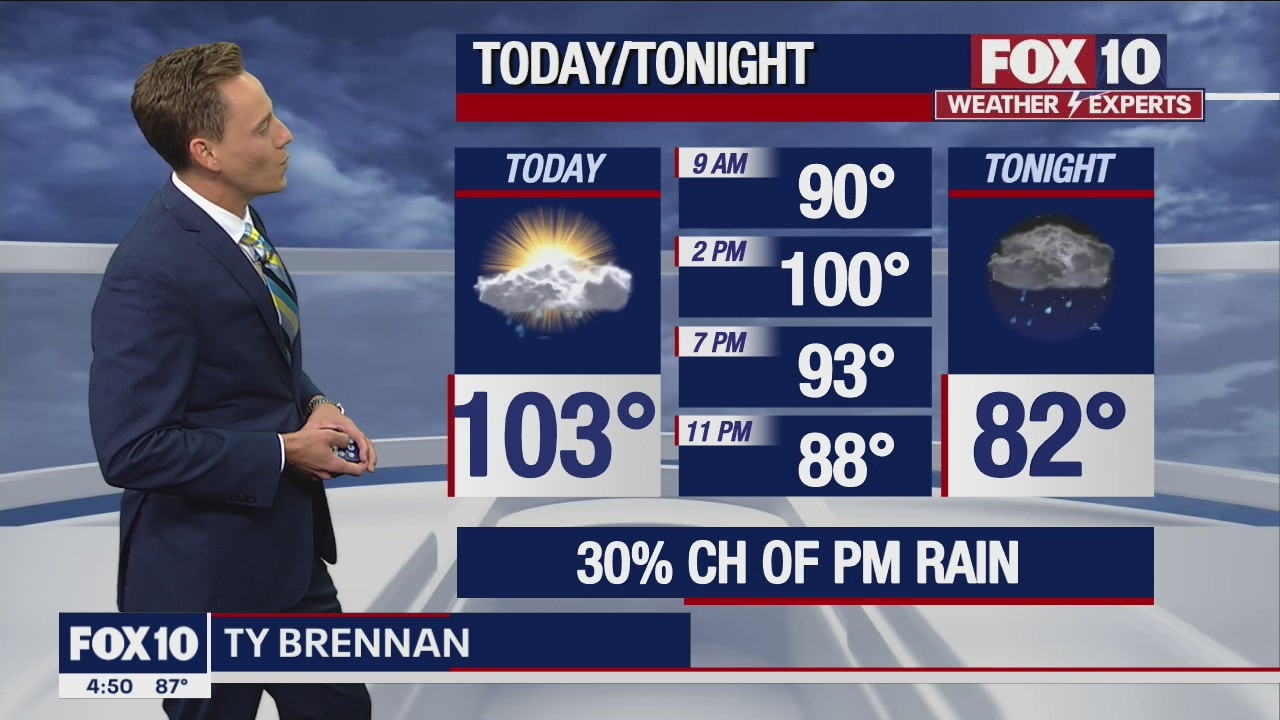 A chance for more rain in the Valley with a high in the low-100s.