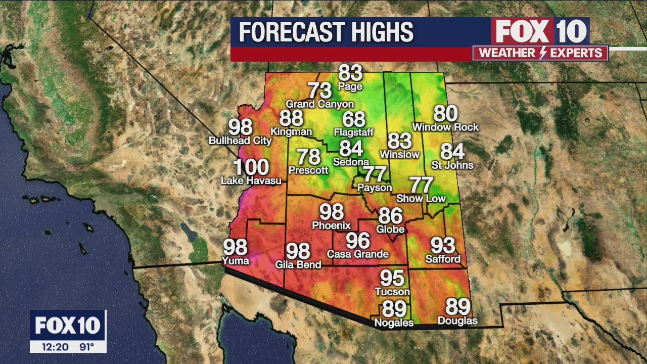 A chance for more rain in the Valley with a high in the upper-90s.