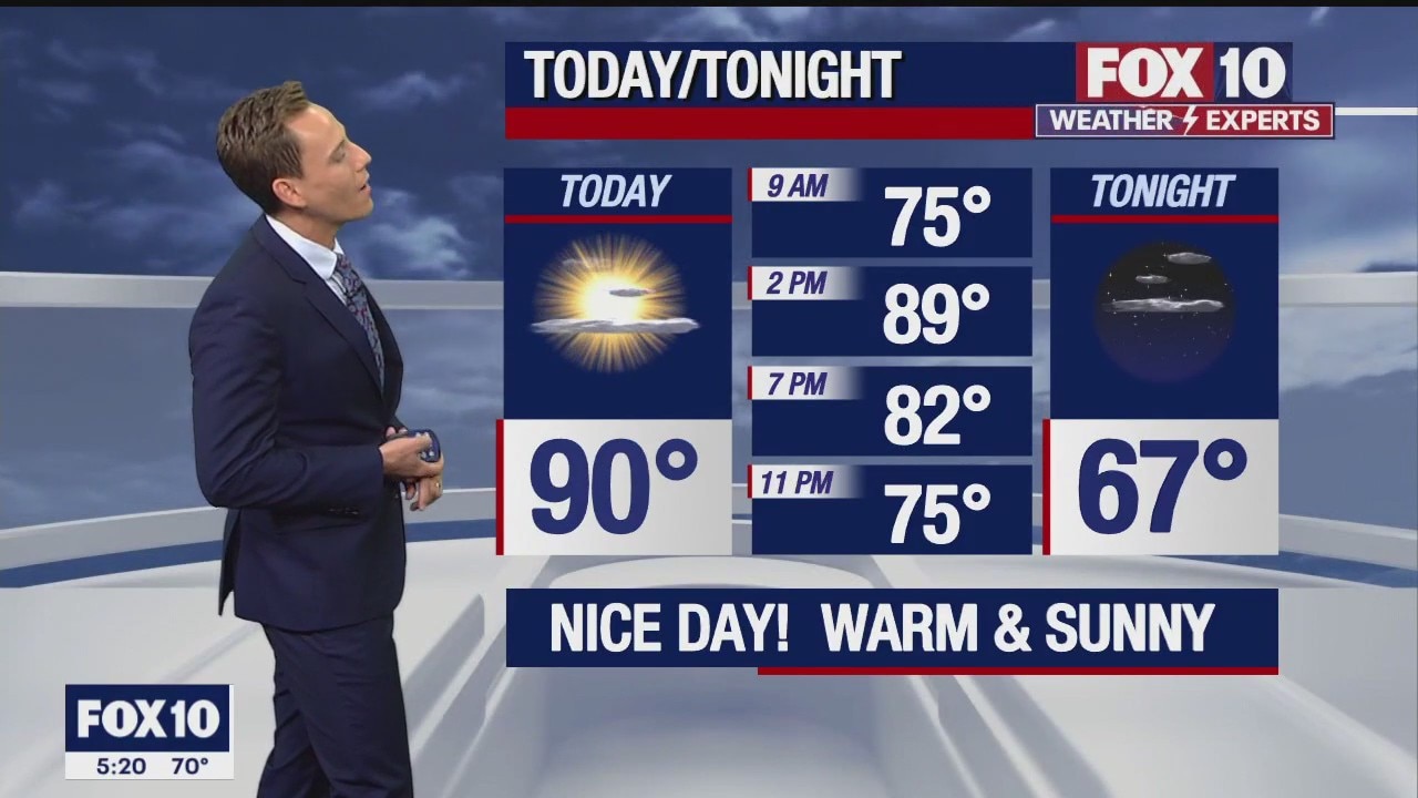 A sunny day with a high in the low 90s for the Valley.