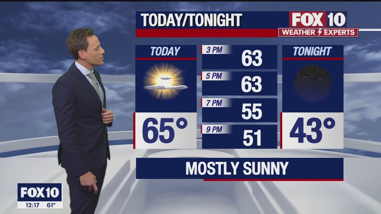 Mostly sunny skies in the Valley with a high in the mid-60s.