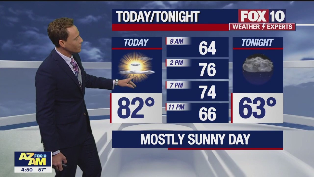 Mostly sunny skies in the Valley with a high in the low-80s.