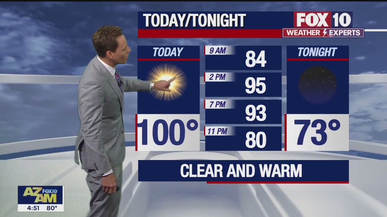 Clear skies and warm temps today in the Valley with a high near triple digits.