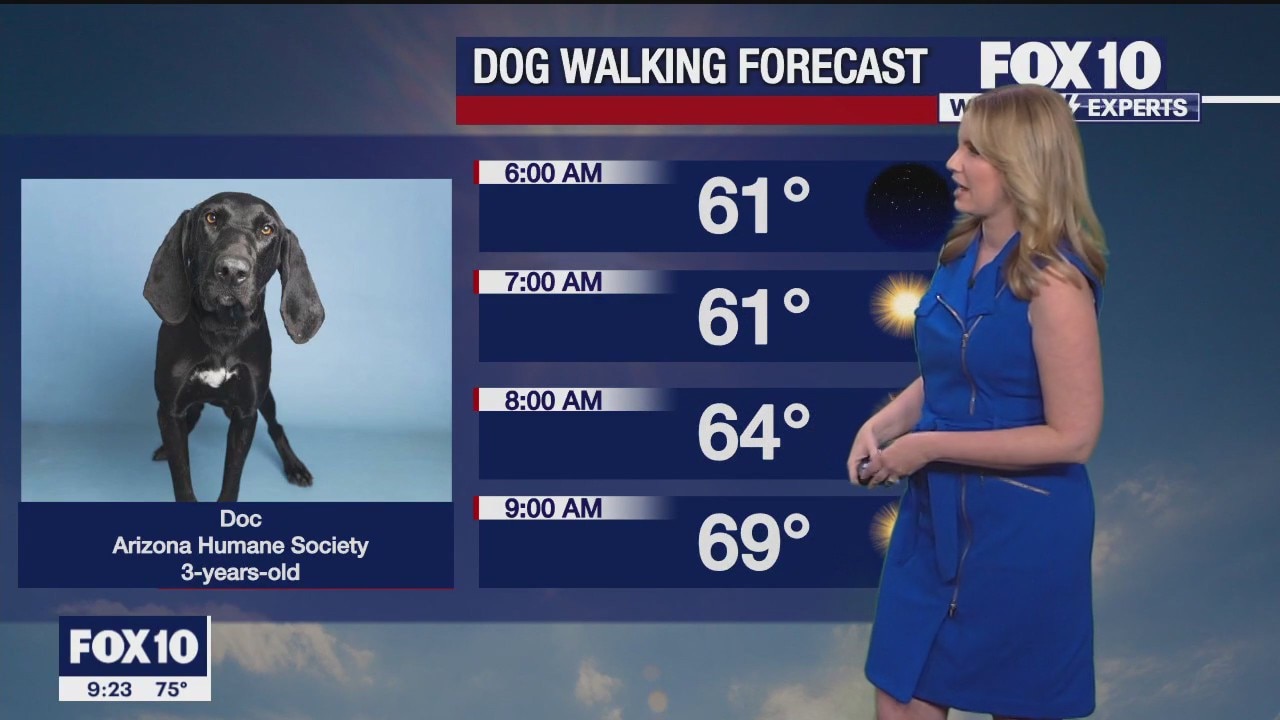 Here's your dog walking forecast! Although this weekend is a bit warmer, it's still chilly in the morning.