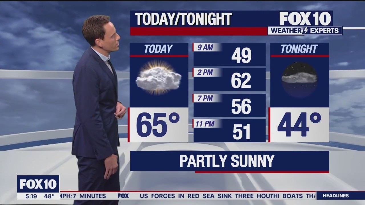 A cloudy start to 2024 in the Valley with a high in the mid-60s.