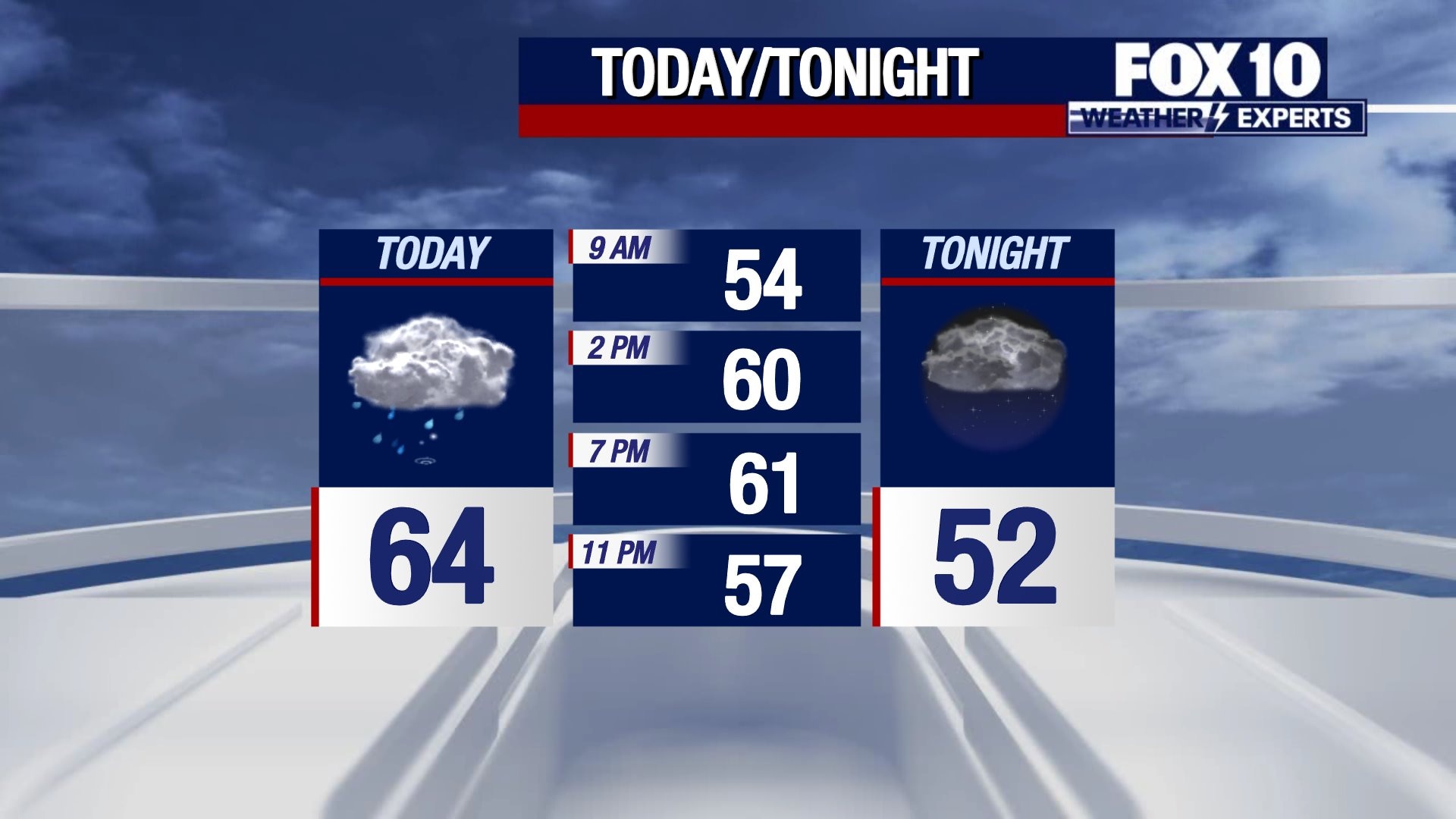 A chance for more storms in the Valley with a high in the 60s.