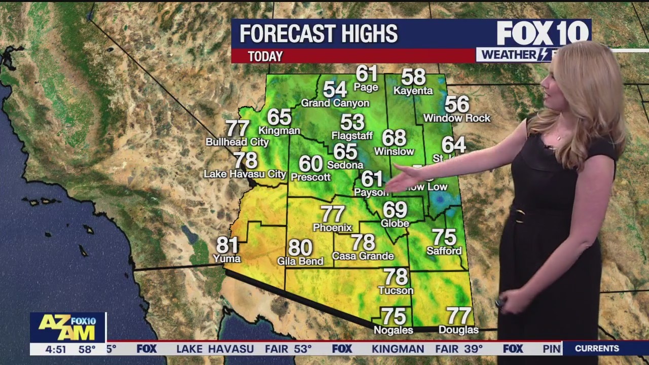 A mix of sun and clouds on Presidents' Day in the Valley with a high in the upper 70s.