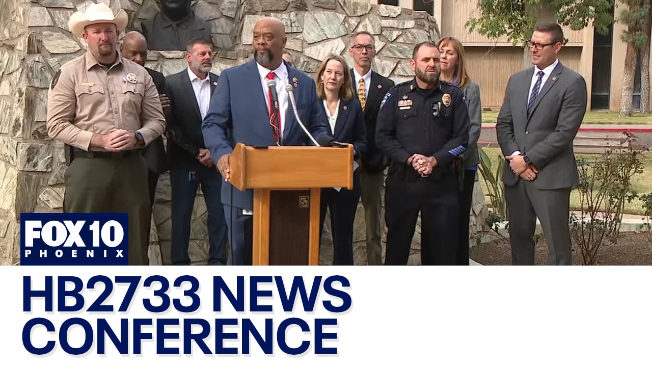 Attorney General Kris Mayes and other Arizona leaders held a news conference on Feb. 17 to discuss HB2733, which would provide immunity to law enforcement when intercepting drones engaged in drug smuggling and other crimes near the southern border.