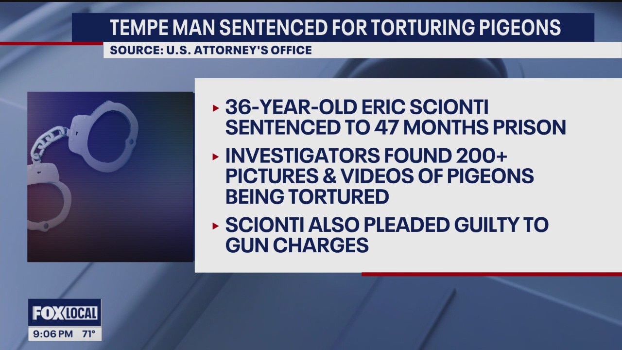 A Tempe man was sentenced to nearly four years in prison for illegally owning guns and ammo, as well as documenting the torture and killing of pigeons.