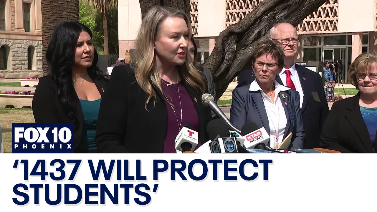 State Senator Carine Werner, Maricopa County Attorney Rachel Mitchell and lawmakers from both the House and Senate hold a press conference to discuss legislation to crack down on sexual misconduct in Arizona's K-12 schools.