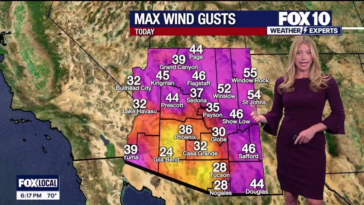 Wind gusts came close to 50 mph in the eastern part of the state as we prepare for temperatures to warm up later this week in the Valley.