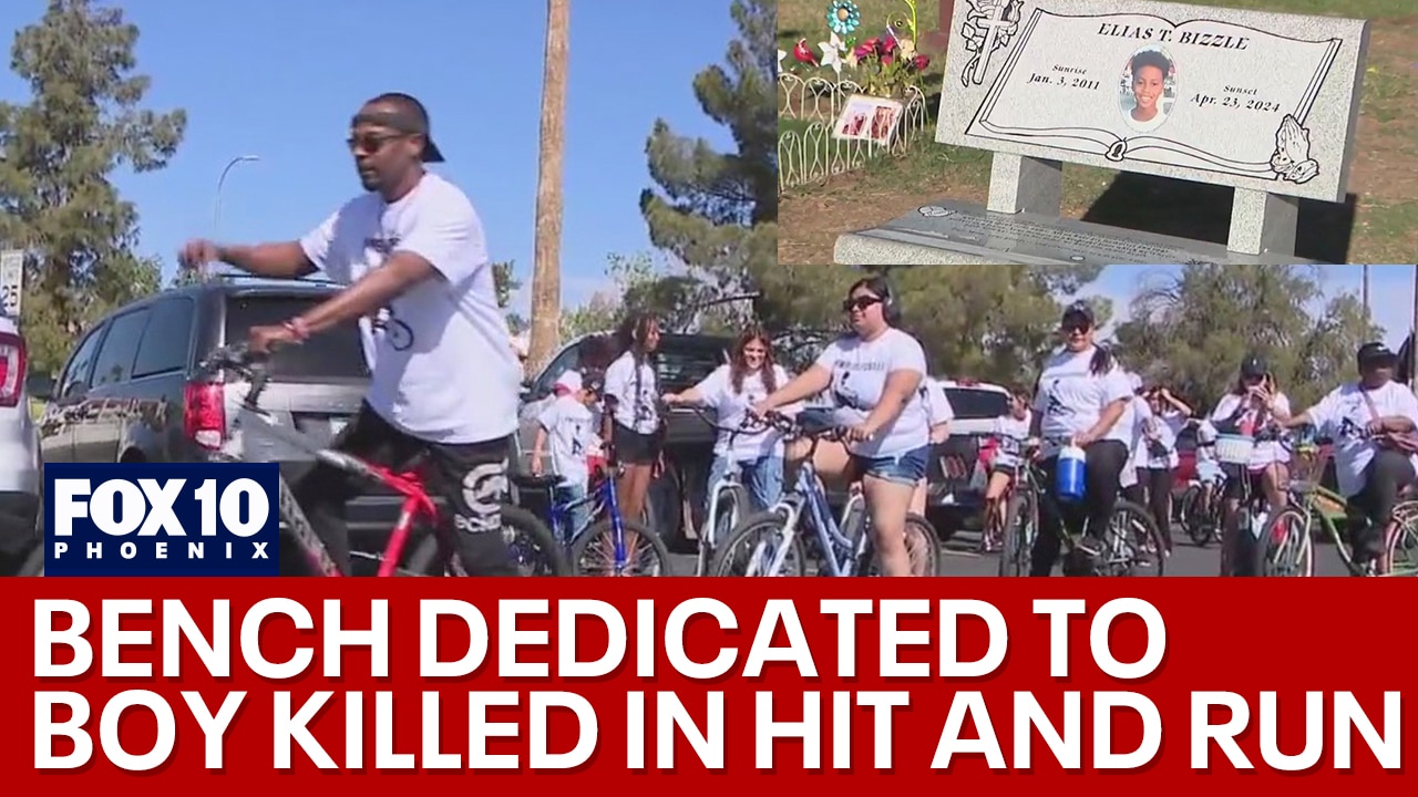 A group bike ride and dedication of a new bench for 13-year-old Elias Bizzle happened in Glendale to honor the boy killed by a hit-and-run driver. FOX 10's Kenzie Beach has more.