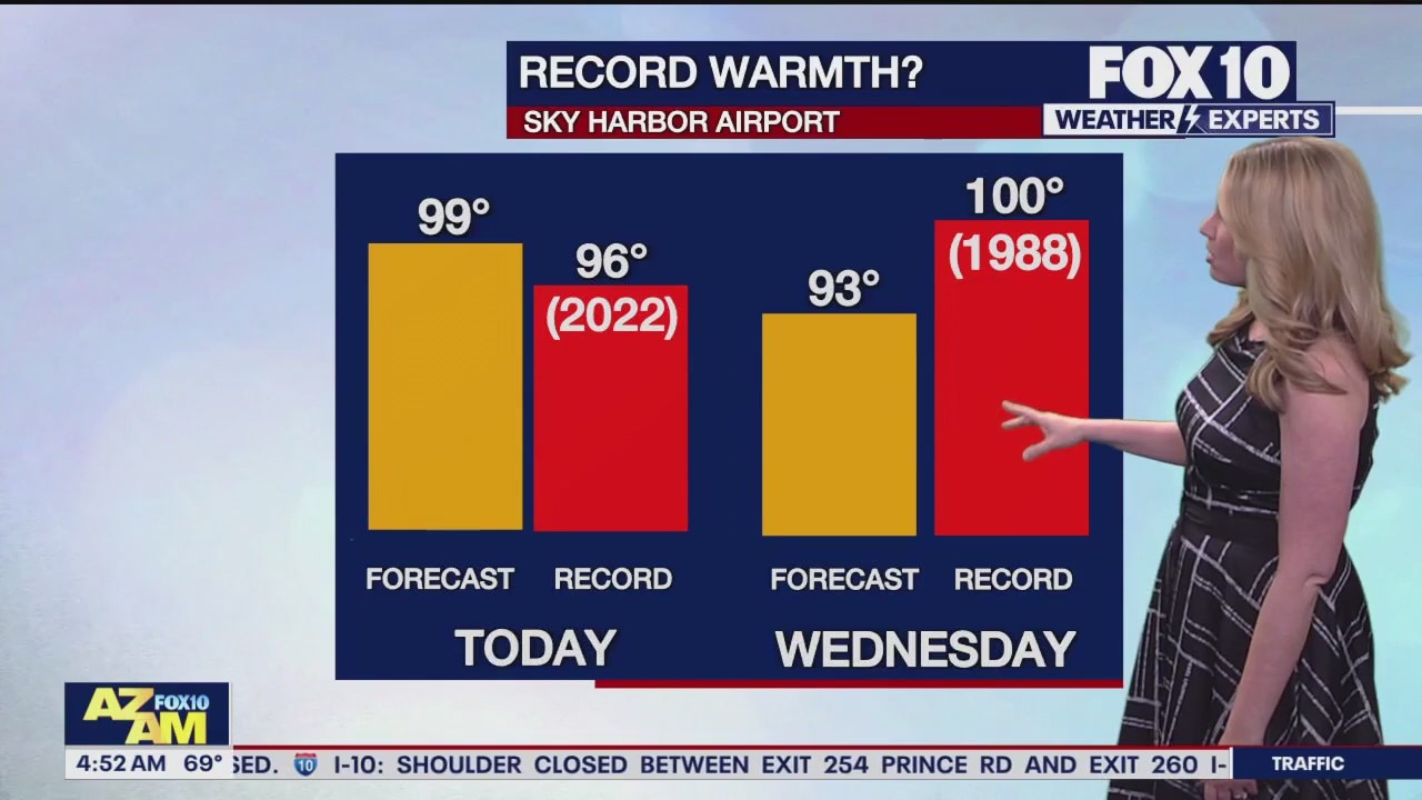 Record high temps are expected today in Phoenix. We'll see a high near 99 degrees.