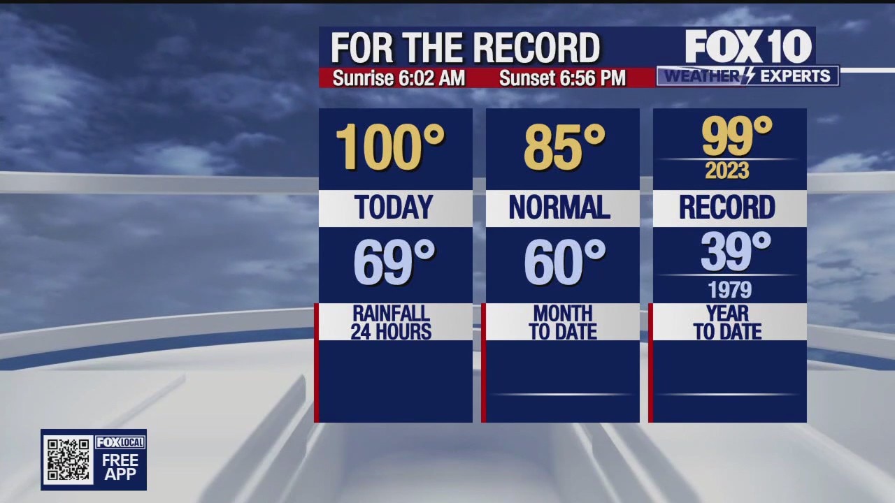 We set a record-high temperature for this date and had our second consecutive day over 100°.