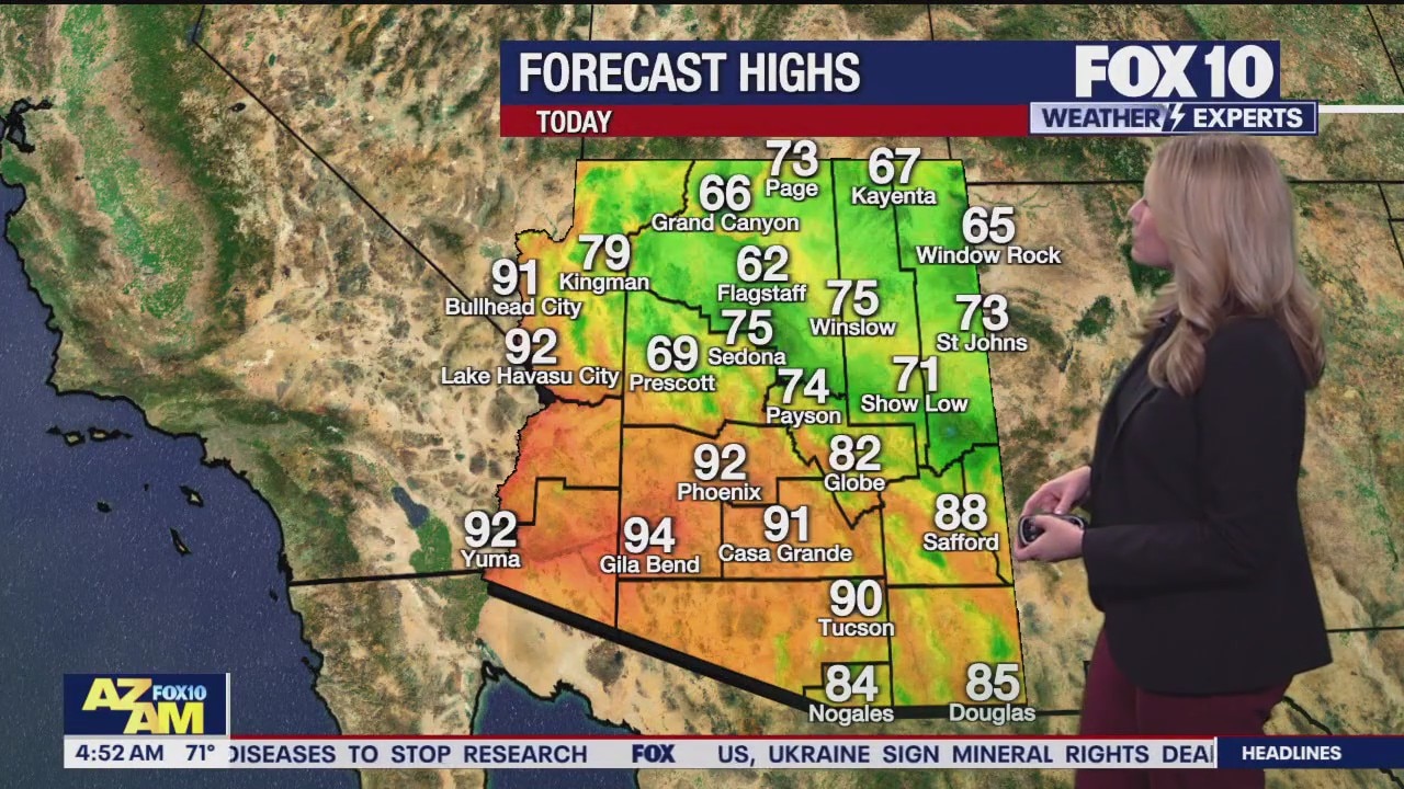 A mostly sunny and warm Thursday in the Valley with highs in the 90s.