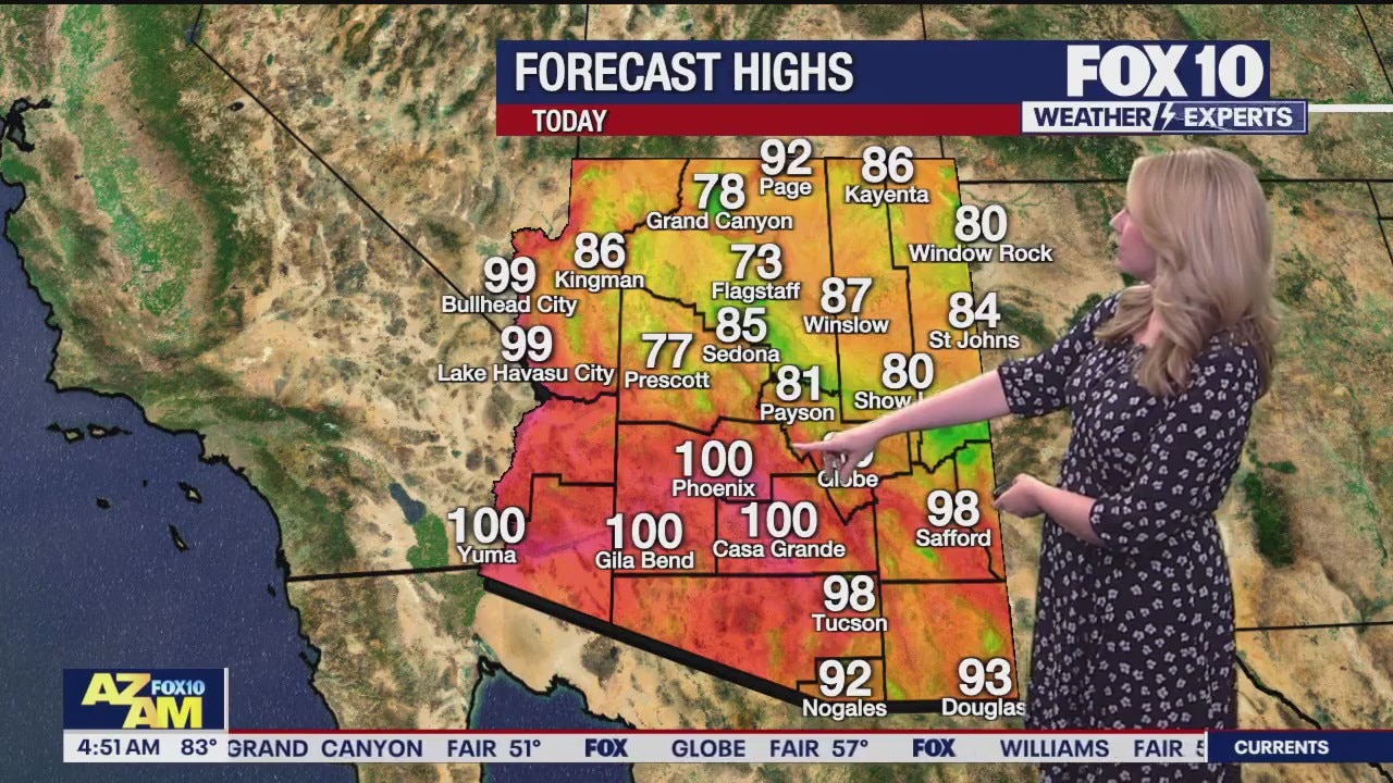 A hot and breezy Monday in the Valley with a high near 100 degrees.