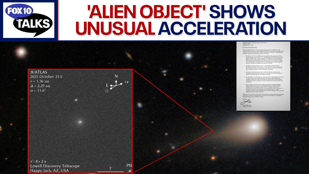 FOX 10 Talks with Ellen McNamara & Trenton Hooker discuss the day's top stories, including a deep dive with Harvard professor Dr. Avi Loeb on the mysterious interstellar object 3I/ATLAS and new pressure on NASA for high-resolution images. Also covered is the threat to Silicon Valley from foreign state actors, featuring analysis from a former Russian sex spy.