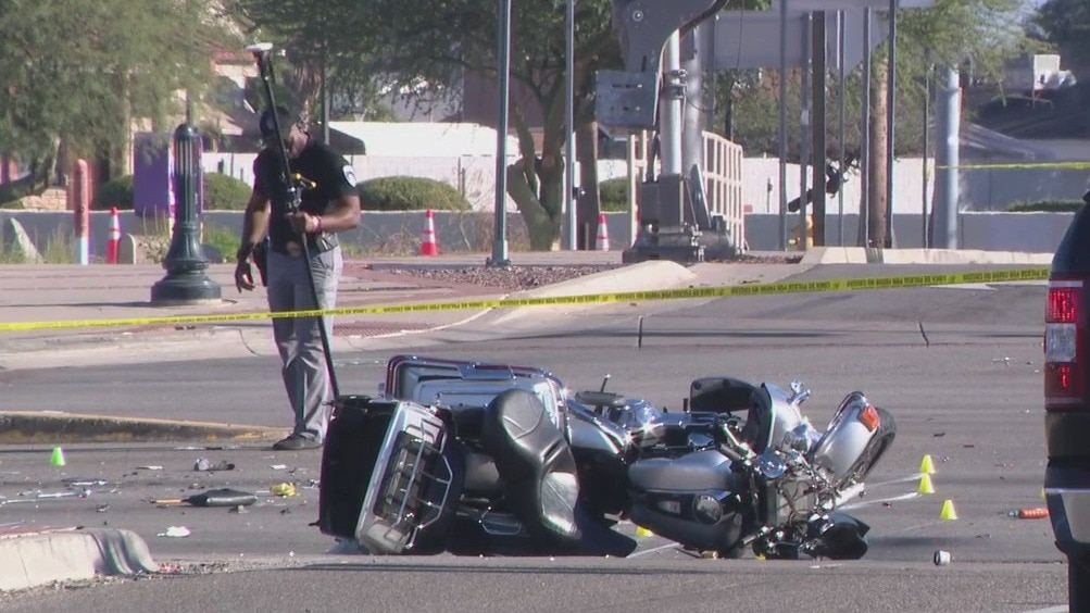 A 70-year-old motorcyclist has died after colliding with a vehicle near Grand and Peoria Avenues on Sunday morning.