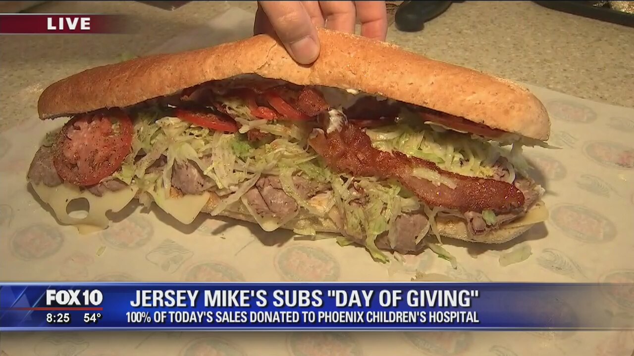 Fox 10's Cory McCloskey checked out Jersey Mike's for their "Day of Giving," where 100 percent of today's sales will go to the Phoenix Children's Hospital. (3-30-16)