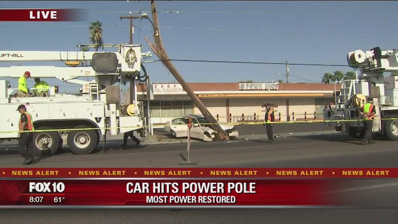 Hundreds of people are without power near downtown Phoenix on Tuesday morning after a car crashed into a power pole.